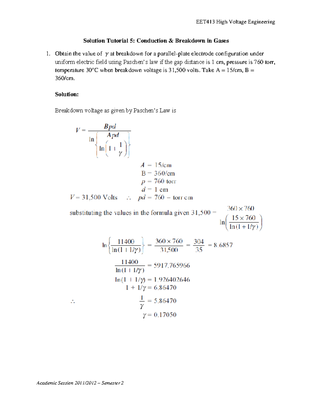 Solution Tutorial Chapter 2 Past Year Solution Tutorial 5 Conduction Amp Breakdown In Gases Studocu