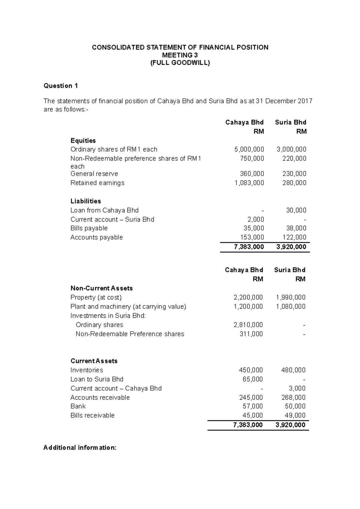 Exercise Far560 Full Goodwill Consolidated Statement Of Financial Position Meeting 3 Full Studocu